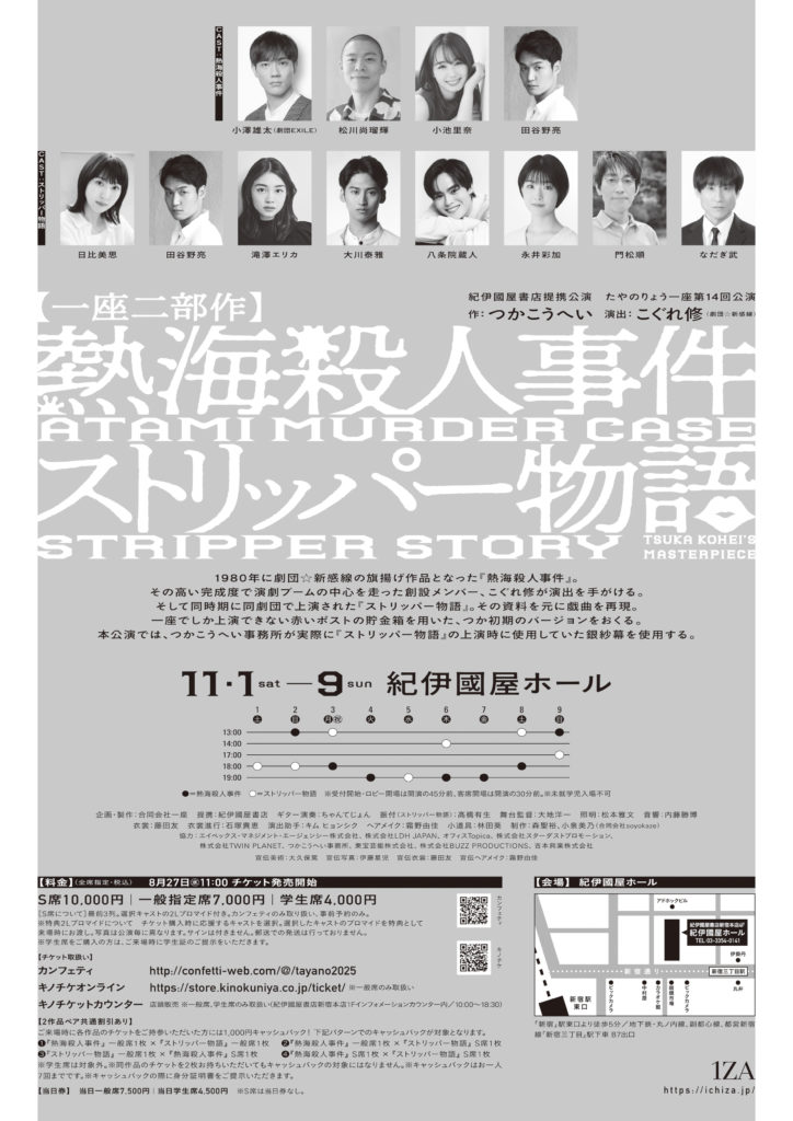 紀伊國屋書店提携公演 たやのりょう一座 第14回公演「熱海殺人事件/ストリッパー物語」に【 門松 順 】が出演いたします。